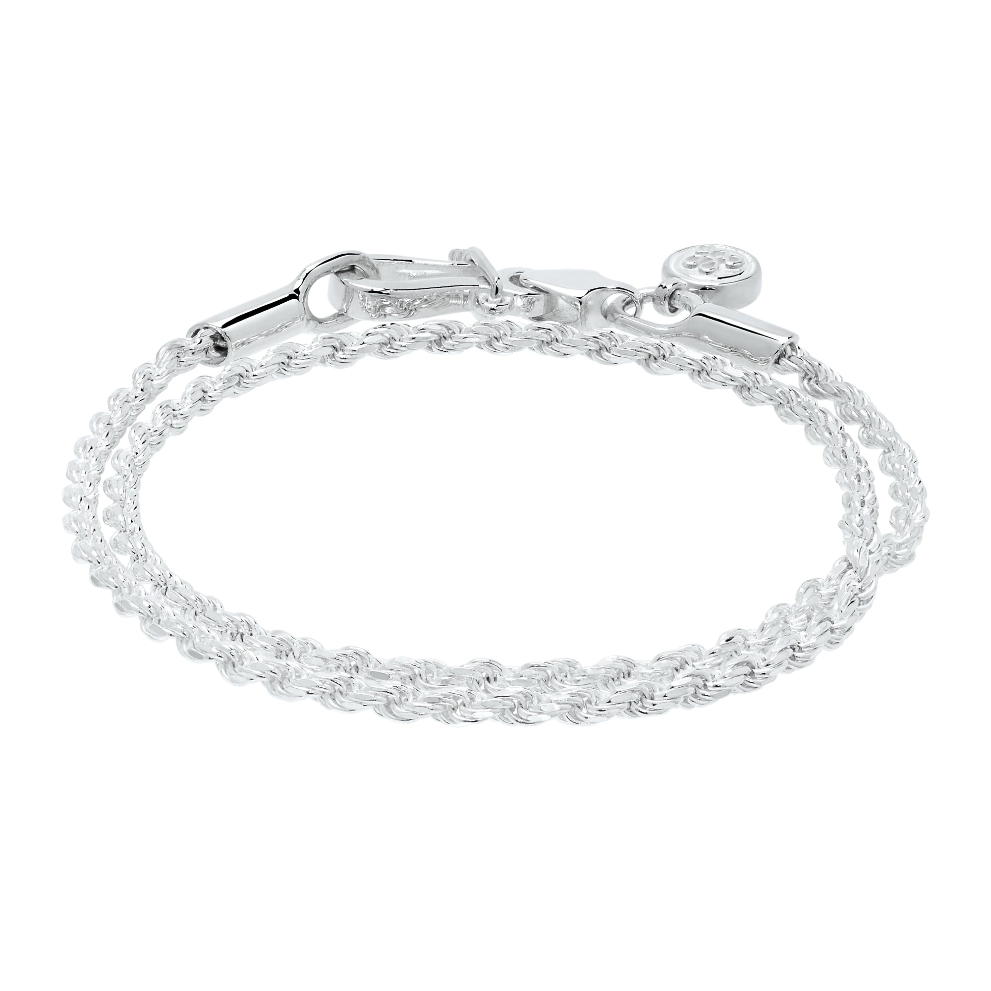 Diamond-cut rope chain end caps are intentionally asymmetrical, doubling as the functional ring that receives the hook and the anchoring point that closes the bracelet. A signature tag, embossed in 3D with our logo and stamped with the 925 sterling silver hallmark, completes the piece.