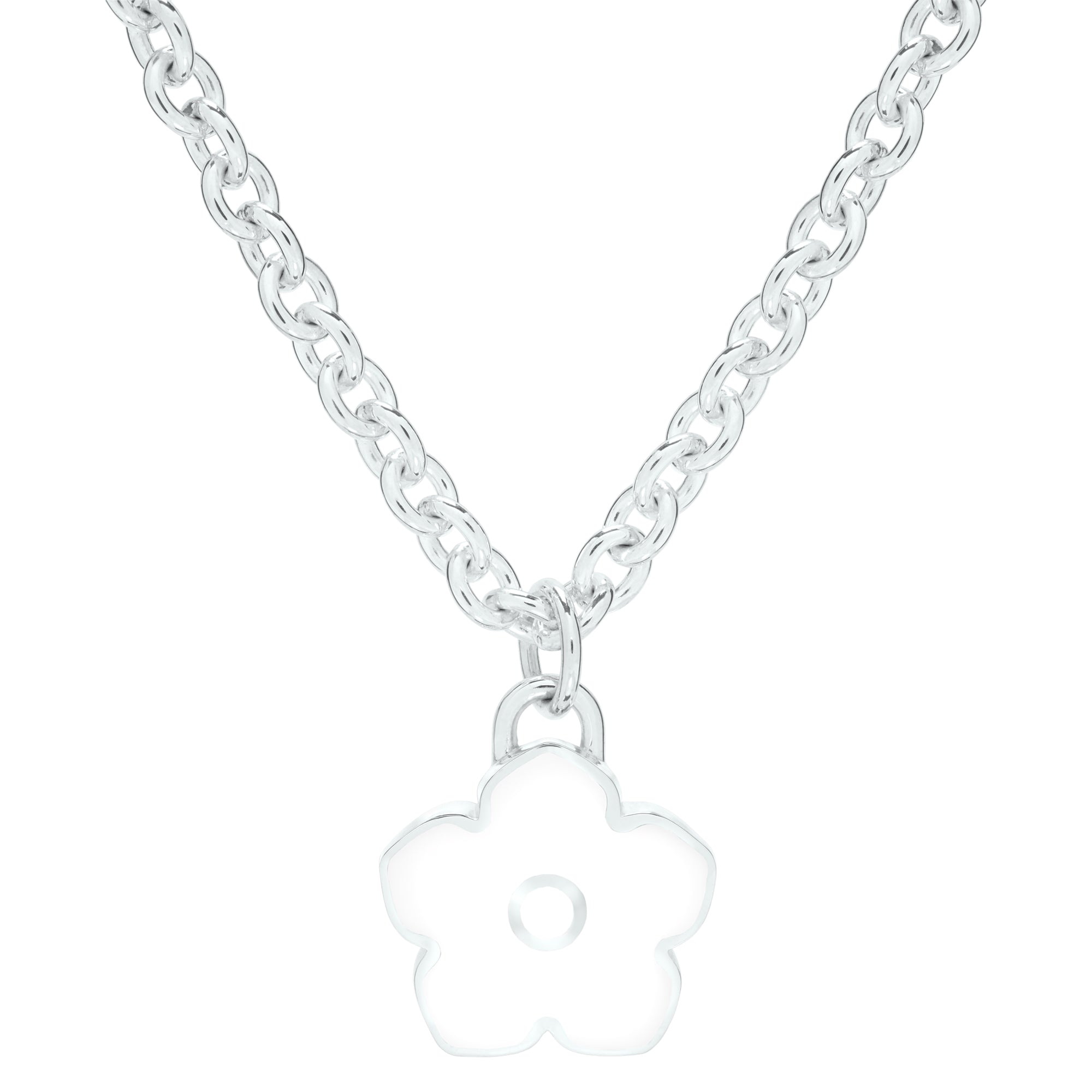 Flower Power - Necklace - White Enamel - 925 Sterling Silver