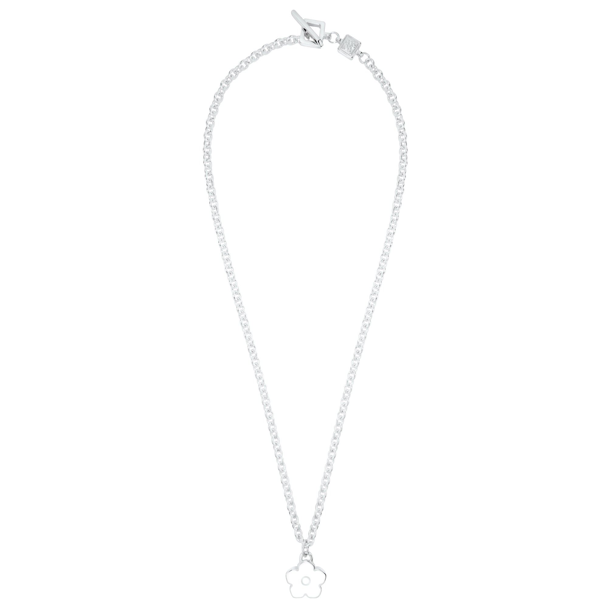 - Design And Features: - Chunky, sculptural design with iconic, unapologetic style - Bold 6mm chain delivers a modern, edgy statement - Signature toggle clasp combines form and function - Sleek enamel flower motif adds a fresh, high-fashion twist - Embossed 3D Gab McNeil logo on back of pendant - Crafted in pure 925 sterling silver with a raised purity mark - Artistic, audacious and eye-catching design